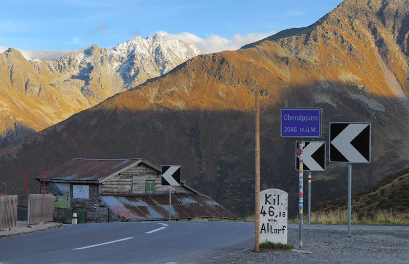 Nous contournons ensuite l’Italie par le col du Saint-Bernard (2065 m, à ne pas confondre), pour redescendre vers le Tessin et remonter vers le célèbre col du Saint-Gothard (2108 m).